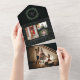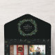 Joyeux Noël! Envoyez des salutations de vacances à votre famille et à vos amis avec cette élégante carte de Noël. Il présente des illustrations dessinées à la main de baies rouges et de feuilles créant une belle couronne botanique. Personnalisez ce jour férié en une seule carte avec votre nom de famille, prénoms, salutation, année et 4 photos personnalisées. Ce botanique noir tout en une carte de Noël se plie et peut être envoyé comme carte postale de vacances. Il comprend votre adresse de retour personnalisée et votre zone d'adresse postale vierge, tous emballés dans une seule carte pliable. Aucune enveloppe n'est nécessaire ! La partie inférieure fait un joli sac photo de famille. Jointure collante et autres articles de vacances disponibles par Janelle Wourms Design.