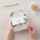 Affichez tous les détails de votre mariage avec cette élégante invitation de mariage "Tout en Un", avec un fond blanc classique, une calligraphie noire et une police cursive, conçue avec un feuillage aquarelle tropical succulent avec des fleurs dorées fausses. Les invités peuvent facilement détacher la carte postale de réponse et la mettre à la poste ! Modifiez facilement toutes les informations avec vos coordonnées de mariage en utilisant le modèle fourni. Invitations de mariage tout-en-un abordables qui épateront vos invités.