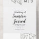 Invitation Tout En Un Feuille de Monstera Double Ligne Art Noir Blanc Ma