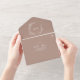 Ce mariage minimal neutre feuille tout en une seule invitation est parfait pour un mariage boho. Le design se compose d'une simple silhouette de feuille de verdure dans un ton naturel terreux avec un style bohème minimaliste du désert. Écrivez vos adresses d'invités à l'arrière de l'invitation pliée, ou achetez les autocollants de étiquette de adresse d'invités de coordination (vendus séparément).