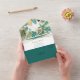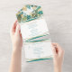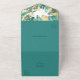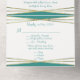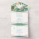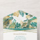 Un beau design turquoise et doré en feuille tropicale tout en un faire-part de mariage, ce qui rend vos plans mariages tellement plus simple que de commander toutes les enceintes séparées d'une invitation régulière. Une pièce centrale blanche et dorée complète le milieu et le bas de vos détails d'invitation