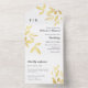 Invitation Tout En Un Feuilles Gold Foil Monogramme Mariage élégant