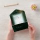 Un arrière - plan d'aquarelle dans les tons vert émeraude est surmonté d'une abstraite de lignes dorées fines et d'effets lumineux scintillants pour créer les pièces de cette belle suite mariage. La carte combinée faire-part de mariage et RSVP présentée ici présente également du texte non centré et un beau dégradé pour contenir tout votre texte. Ajoutez facilement vos propres noms, date mariage et détails de l'événement à l'aide du modèle fourni. Recherchez ID867 pour voir d'autres pièces et choix de couleurs pour cet ensemble.