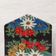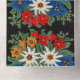 Une image d'un motif floral avec un look broderie Edelweiss blanc fleurs alpines d'Europe sur votre produit. Couleurs bleues, rouges, jaunes et blanches. Alpinum de Leontopodium de Suisse, Allemagne et Autriche.