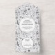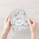 Dessins modernes monochromes de fleurs en noir et blanc. Une magnifique coordination tout en une seule invitation que vous pouvez modifier pour convenir à votre célébration. La partie inférieure peut être arrachée à R.S.V.P. par la poste.