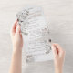 C'est une invitation de mariage élégante et magnifique appelée "tout-en-un" qui contient une carte de réponse à détacher qui peut être renvoyée directement avec votre réponse.