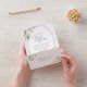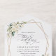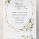 Invitations amis et famille dans le style et donner le ton pour votre journée spéciale avec ce faire-part de mariage charmant. Le design présente des fleurs d'aquarelle blanche, de la verdure et un cadre doré sur un arrière - plan blanc.