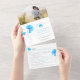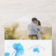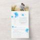 Invitation Tout En Un Fleurs bleues tourbillon gris aquarelle photo pers