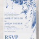 Invitation Tout En Un Fleurs d'art bleu et blanc mariage
