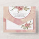 Fleurs d'aquarelle rose rose poussiéreuses avec fleurs feuilles, le tout dans un seul faire-part de mariage. Ce design élégant présente un cadre en arc et des fleurs de cactus couleur rose poussiéreuses aux feuilles succulents et autour il y a un arrière - plan de plâtre aquarelle. La carte RSVP peut être détachée.