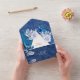Invitation Tout En Un Fleurs de rose blanche sur papier motif bleu