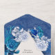 Invitation Tout En Un Fleurs de rose blanche sur papier motif bleu