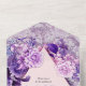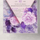 Invitation Tout En Un Fleurs de rose blanche sur papier motif violet