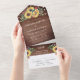 Ces invitations de mariage rustiques à l'aquarelle présentent un design de tournesol aquarelle avec des feuilles d'eucalyptus, des feuilles d'automne et des lampes à cordes sur un arrière - plan en bois. Personnalisez-les avec votre texte. Produits correspondants disponibles.