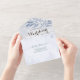 Faire-part de mariage moderne avec Modèle de carte postale RSVP détachable - Feuilles d'aquarelle bleu Vintage et Script manuscrit sur Arrière - plan d'aquarelle. Un design parfait pour votre grand jour. Tous les styles de texte, couleurs, tailles peuvent être modifiés selon vos besoins ! Ajoutez simplement vos noms, informations mariages, votre réponse par date, votre choix de repas et votre ou vos nom(s) et adresse de retour sur ce modèle facile à utiliser. Facile à retirer de la carte postale RSVP perforée. Il suffit de Plier chaque carte dans la forme esquissée, puis de sceller et d'envoyer, aucune enveloppe nécessaire pour l'expédition!
