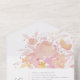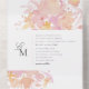 Un tout en un faire-part de mariage présente des illustrations florales d'aquarelle rose et le monogramme du couple.