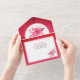 Invitation Tout En Un Fleurs roses et rouges et mariage d'arche