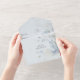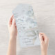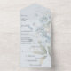 Cette faire-part de mariage tout en un moderne présente une collection captivante de fleurs sauvages d'aquarelle bleu clair sur un arrière - plan bleu pâle. Cette suite d'invitation enchanteresse transportera vos invités dans un monde de beauté tranquille, évoquant un sentiment d'harmonie et de romantisme pour votre journée spéciale. Les invitations de mariage tout-en-un sont à la fois belles et pratiques en combinant le faire-part de mariage avec une carte postale RSVP perforée facile à enlever. Ils sont aussi rapides et faciles à préparer pour l'envoi. Adressez-vous simplement à l'invitation, pliez le rabat arrière et scellez avec les autocollants clairs inclus. Une fois que vos invités reçoivent l'invitation préadressée, ils arrachent simplement la carte perforée RSVP et la déposez dans le courrier.