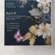 Invitation Tout En Un Fleurs soies blanches et bleu clair sur bleu foncé