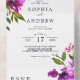 Invitation Tout En Un Fleurs violettes et Mariage Feuille verdoyant