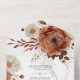 Présentant cette superbe faire-part de mariage All-in-One au design floral délicat dans les tons riches et chauds de l'automne. Cette belle invitation est parfaite pour les couples à la recherche d'une touche d'élégance et de romance pour leur célébration mariage de automne. Les invitations de mariage tout-en-un sont à la fois belles et pratiques en combinant le faire-part de mariage avec une carte postale RSVP perforée facile à enlever. Ils sont aussi rapides et faciles à préparer pour l'envoi. Adressez-vous simplement à l'invitation, pliez le rabat arrière et scellez avec les autocollants clairs inclus. Une fois que vos invités reçoivent l'invitation préadressée, ils arrachent simplement la carte perforée RSVP et la déposez dans le courrier.