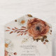Présentant cette superbe faire-part de mariage All-in-One au design floral délicat dans les tons riches et chauds de l'automne. Cette belle invitation est parfaite pour les couples à la recherche d'une touche d'élégance et de romance pour leur célébration mariage de automne. Les invitations de mariage tout-en-un sont à la fois belles et pratiques en combinant le faire-part de mariage avec une carte postale RSVP perforée facile à enlever. Ils sont aussi rapides et faciles à préparer pour l'envoi. Adressez-vous simplement à l'invitation, pliez le rabat arrière et scellez avec les autocollants clairs inclus. Une fois que vos invités reçoivent l'invitation préadressée, ils arrachent simplement la carte perforée RSVP et la déposez dans le courrier. L'ajout du code QR permet à vos invités d'accéder facilement à votre site mariage pour obtenir des informations, notamment les détails de la réception et les choix de dîner !