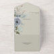 Votre mariage des merveilles hivernales mérite une invitation qui saisit la magie et le charme de la saison. Laissez cette invitation de mariage tout en un hiver avec son design floral bleu glace captivant sur arrière - plan vert sage être le prélude parfait à votre célébration inoubliable de l'amour. Les invitations de mariage tout-en-un sont à la fois belles et pratiques en combinant le faire-part de mariage avec une carte postale RSVP perforée facile à enlever. Ils sont aussi rapides et faciles à préparer pour l'envoi. Adressez-vous simplement à l'invitation, pliez le rabat arrière et scellez avec les autocollants clairs inclus. Une fois que vos invités reçoivent l'invitation préadressée, ils arrachent simplement la carte perforée RSVP et la déposez dans le courrier. L'ajout du code QR permet à vos invités d'accéder facilement à votre site mariage pour obtenir des informations, notamment les détails de la réception et les choix de dîner !