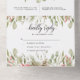 Cette délicate faire-part de mariage d'aquarelle présente des couleurs traditionnelles de Noël, du vert olive et du rouge canneberge sur un blanc éclatant. Le libellé mariage est centré à l'intérieur d'un cadre fleuri. Tout le texte peut être modifié pour répondre aux besoins de votre événement. Coordonner avec d'autres articles de la Collection Mariage de Foliage Forestier. La partie inférieure de cette invitation est une carte RSVP détachée avec l'adresse de retour imprimée au verso.