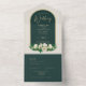 Invitation Tout En Un Forêt Vert Or Roses blanches Mariage d'hiver