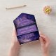 Galaxie, violet, nuit étoilée, ciel, étoiles Tous en une seule invitation. Photo spatiale, Espace extra-atmosphérique, bleu marine, élégante, invitation de mariage moderne. Customisez avec vos détails. Commandez à temps pour éviter une déception.
