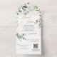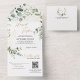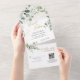 Invitation Tout En Un Gold Green Eucalyptus Monogramme QR Code Mariage
