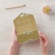 Le tout dans un faire-part de mariage avec des feuilles botaniques de verdure rustique, et la typographie élégante sur un arrière - plan d'or. L'invitation comprend une carte RSVP perforée avec un code QR. Conçu par Thisisnotme©