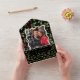 Invitation Tout En Un Gras Black Christmas Holly Wavy Frame Photo