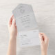 Grey Velvet Laurel Wreath Minimalist Wedding All in One Invitation