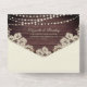 Faire-part de mariage rustique TOUT EN UN avec carte de réponse RSVP perforée facile et conception pliable, facile à sceller et à envoyer, donc aucune enveloppe n'est nécessaire pour l'expédition et pratique pour les invités pour répondre par courrier. Beau bois rustique avec des guirlandes lumineuses et accentué de dentelle dans une couleur ivoire crème, beige blanc cassé. Tout le texte est modifiable pour adapter la formulation à vos besoins. Contactez le concepteur via Zazzle Chat ou makeitaboutyoustore@gmail.com si vous souhaitez que ce design soit modifié, sur un autre produit ou des articles coordonnés.