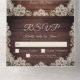 Faire-part de mariage rustique TOUT EN UN avec carte de réponse RSVP perforée facile et conception pliable, facile à sceller et à envoyer, donc aucune enveloppe n'est nécessaire pour l'expédition et pratique pour les invités à répondre par courrier. Beau bois rustique avec des guirlandes lumineuses et accentué de dentelle dans une couleur crème ivoire, beige blanc cassé. Tout le texte est modifiable pour changer la formulation selon vos besoins. Contactez le concepteur via Zazzle Chat ou makeitaboutyoustore@gmail.com si vous souhaitez que ce design soit modifié, sur un autre produit ou des articles coordonnés.