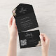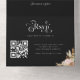 Invitation tout-en-un noire avec herbe des pampas séchée, feuille de palmier du désert et calligraphie bohème avec une typographie rétro audacieuse. Un code QR scannable renvoie à votre site web de mariage et formulaire de RSVP. Comprend des initiales de monogramme minimalistes simples - une invitation de mariage tout-en-un chic inspirée des années 60/70 avec des vibrations de plage tropicale.
