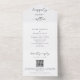 Élégante "Happily Ever After" faire-part de mariage tout-en-un noir et blanc avec code QR.