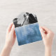 Le heureux jamais après la fête de mariage avec une déchirure RSVP bleu-gris lustré vaguement peint sur blanc. Texte de script typographique art abstrait post-faire-part de mariage lit Le bonheur toujours après la fête de mariage. Design contemporain simple, personnalisez avec votre propre salle de mariage mariage tardif après la fête, les noms des mariées et des mariées et les détails de la réponse, et votre photo de mariage préférée de votre jour de mariage au verso. Idéal pour les mariages reportés. Cette conception ne nécessite aucune enveloppe supplémentaire et dispose d'un RSVP perforé amovible pour des réponses faciles. Produits mariages correspondants et autres options de couleur disponibles dans le magasin. © Laver aquarelle peinture et design par Sarah Trett pour www.mylittleedenweddings.com