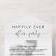 Élégant elopement ou petit faire-part mariage et réception le tout dans une invitation à annoncer votre mariage à la famille et les amis et à les invitation à une fête de célébration post-mariage. "Happily Ever After Party" est écrit dans un mélange de typographie simple et d'un joli script avec des swashes. Votre photo en noir et blanc est superposée avec votre faire-part de salon/mariage customisé et l'invitation à la réception. Une carte postale RSVP détachée offre une réponse commode, écologique et sans enveloppe de la part de vos invités. Votre photo est convertie en image noire et blanche par un filtre — si vous ne le voulez pas, entrez l'outil de conception, cliquez sur votre photo et désactivez le filtre à droite.