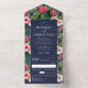 Invitation Tout En Un Hibiscus tropical Moderne Mariage Marine Bleu