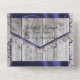Horseshoes & Lace Gettin" Hitched Faire-part de mariage a une élégance rustique, en gardant son thème simple. Design dispose d'un arrière - plan rustique en bois d'écorce paré de ruban bleu et dentelle, fer à cheval noué fleurs sauvages et lampes à cordes. Idéal pour les mariages "à la campagne" ou en plein air. Changez les polices pour créer un look plus élégant ou rustique.