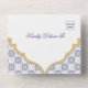 Perfect for luxury, destination, or globally inspired weddings, this indigo Moroccan tile all in one invitation brings architectural beauty, timeless elegance, and international charm to your special day.