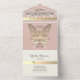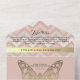 Cette élégante faire-part de mariage tout-en-un est dotée d'un arrière - plan rose poussiéreux, d'un élégant motif de papillon doré à motif dentelle et d'une carte postale RSVP en or moderne. Un subtil motif de chevron roux et taupe décore l'arrière, ajoutant une ambiance ludique mais branchée. Inclut l'espace pour une adresse de retour personnalisée pour la réponse RSVP. Remarque : Cette invitation n'est pas une enveloppe et nécessitera une enveloppe A9 distincte (5,75 po x 8,75 po) pour l'envoi. L'adresse de retour imprimée au verso permet aux clients de retourner la carte RSVP uniquement.
