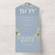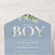Invitation Tout En Un Its A Boy Floral Greenery Dusty Blue Baby Shower