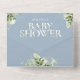A stylish dusty blue all-in-one baby shower invitation featuring elegant floral greenery typography. Add your special celebration details to create the perfect invitation. It includes a diaper raffle or other cute baby shower request card. Designed by Thisisnotme©
