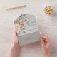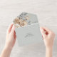 This All-In-One wedding invitation features an elegant ivory floral design on a soft sage green background that exudes timeless romance and refined simplicity. Soft blooms and delicate greenery frame your details beautifully, while the convenient tear-off RSVP keeps everything neatly in one stylish piece. Perfect for a classic, garden, or traditional celebration, this design sets a graceful tone for your special day.