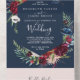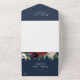Ce mariage bleu marine de jardin d'automne tout en une invitation est parfait pour un mariage de automne. Le design floral présente de superbes fleurs d'aquarelle rose, rouge, bleu marine et bordeaux, des fleurs et des feuilles verts disposés dans une couronne/bouquet d'automne animée. Écrivez vos adresses d'invités à l'arrière de l'invitation pliée, ou achetez les autocollants de étiquette de adresse d'invités de coordination (vendus séparément).