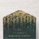 Illustration de branches d'arbres à la végétation luxuriante et sauvage et feuillage suspendu, numériquement superposés d'or, sur un arrière - plan vert émeraude étincelant, orne cet été de printemps tout en un faire-part de mariage avec un thème forestier enchanté. Une invitation élégante et moderne pour un mariage de conte de fées, c'est le faire-part de mariage triplé parfait qui comprend la carte RSVP. Simplement plier, sceller et envoyer. Parfait pour les mariées qui aiment le cadre de la forêt de contes de fées, la forêt de fées ou le thème du jardin de fées et vert émeraude.