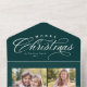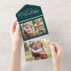 Envoyez un de nos salutations de Noël avec ce carte photo de vacances unique. Doté d'un élégant traitement de type disant "Joyeux Noël" avec un collage de 3 photos, ce design comporte également une section détachable avec une seule photo. Inclure une mise à jour de famille au dos. Mais surtout, cela peut être plié et envoyé sans enveloppe ! La couleur arrière - plan verte et classique est chic et festive mais d'autres couleurs sont disponibles dans la collection.